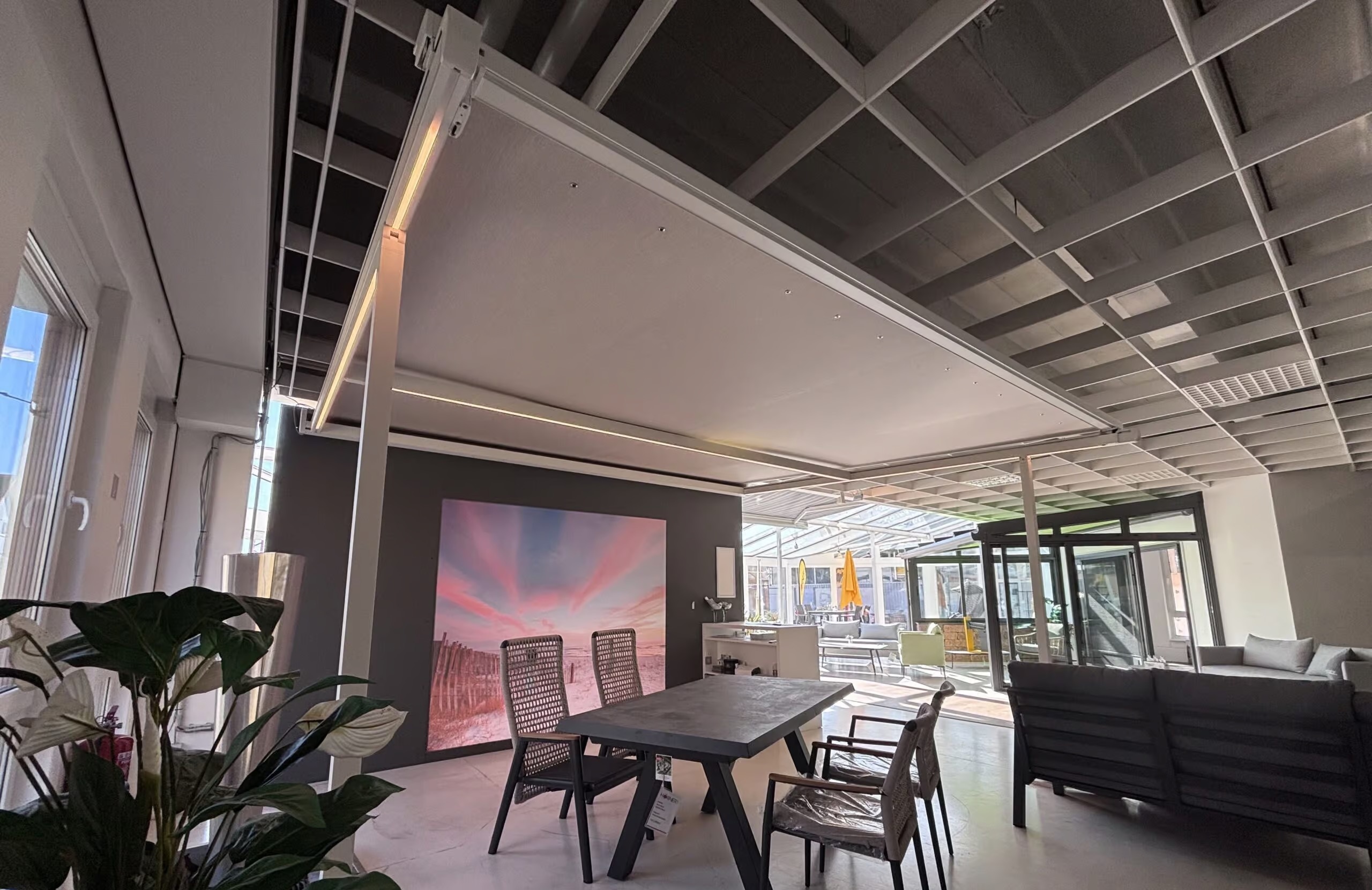 Markisen für Terrassendächer bieten effektiven Sonnenschutz, reduzieren die Hitze und schaffen eine angenehm schattige Atmosphäre für entspannte Stunden auf der Terrasse. Laufen je nach Ausführung über oder unter dem Glas.